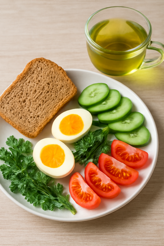 ۱. صبحانه پروتئینی با تخممرغ آبپز و سبزیجات